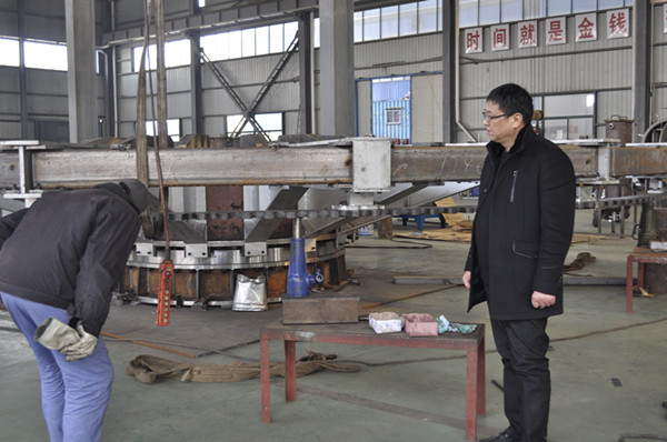 近期,我公司為池州冠華黃金有限公司制作的定量式圓盤澆鑄機(jī)正在廠內(nèi)試組裝,該設(shè)備將自動(dòng)化控制技術(shù)和機(jī)械制造技術(shù)完美結(jié)合,能夠?qū)崿F(xiàn)定時(shí)定量精準(zhǔn)澆鑄。這種新型的圓盤澆鑄機(jī)能夠克服老式圓盤澆鑄機(jī)制品厚薄不均,重量不齊,潑灑嚴(yán)重,勞動(dòng)強(qiáng)度大,能耗大的缺陷。圖為我公司工作人員正在拼裝定量式圓盤澆鑄機(jī)。